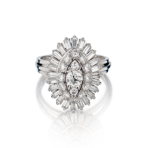 Ladies 14kt White Gold Diamond Cluster Ring. 1.65ct Tw