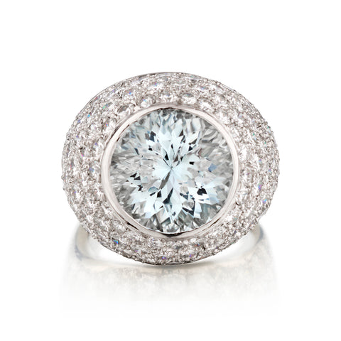Platinum Aquamarine and Diamond Ring. 7.25 Aquamarine