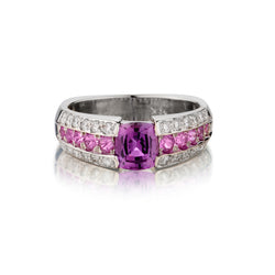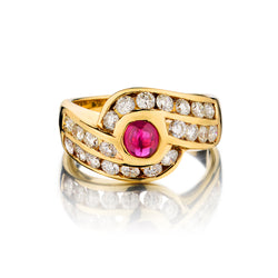14kt White Gold Ruby and Diamond Ballerina Ring. 3.50 Oval Ruby