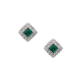 Platinum Vintage Green Emerald and Diamond Drop / Pendant Earrings