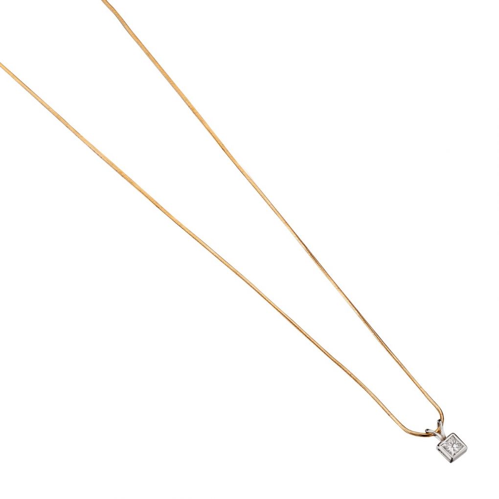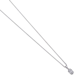Ladies 14kt white gold diamond solitaire pendant featuring a 0.60 carat bezel-set Princess cut diamond of (VS) in clarity and (H-I) in color.