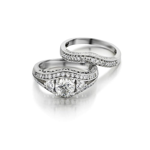 0.70 Carat Round Brilliant Cut Diamond Engagement Ring/Band Set
