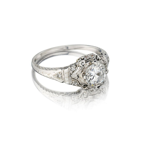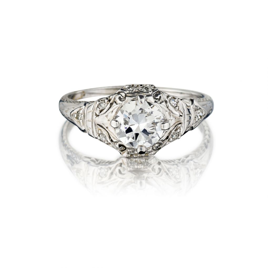 0.85 Carat Old-European Cut Diamond Art Deco White Gold RIng