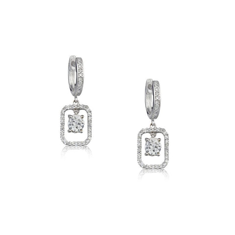 Ladies 18kt white gold diamond pendant earrings featuring (2) Round Brilliant cut diamonds weighing 0.60 carat total weight of (VS) in clarity and (G) in color; suspended in a halo. Further enhanced by (80) Round Brilliant cut diamonds weighing 0.37 carat total weight of (VS) in clarity and (G) in color. 24mm (l) x 8mm (w), 4 grams in weight.
