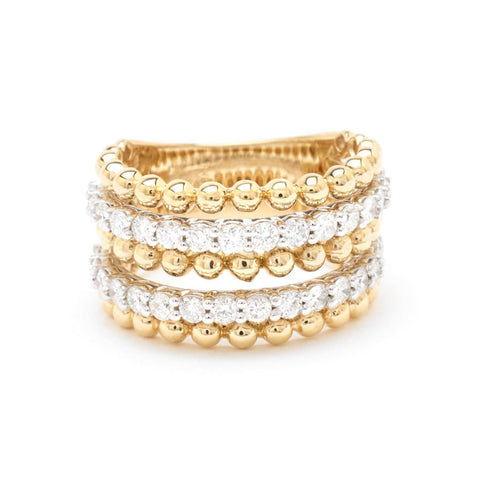 Ladies 18KT yellow gold band featuring (32) round brilliant cut diamonds weighing 1.06 total carat weight of (SI) in clarity and (G-H) in color.