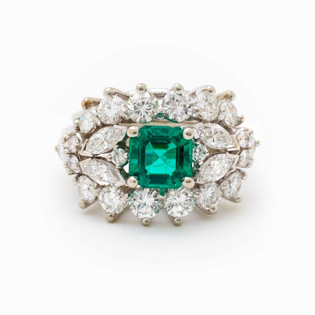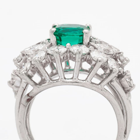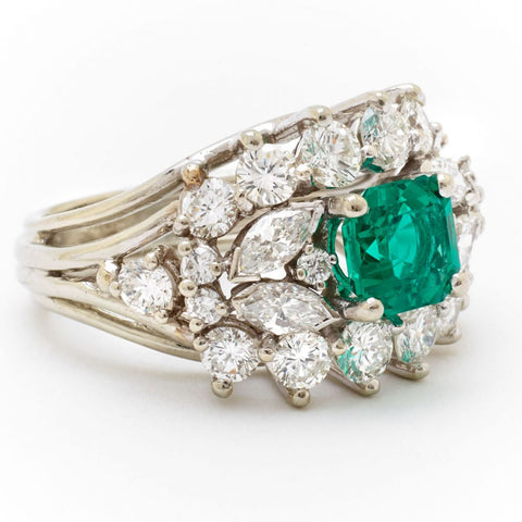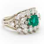 1.45 Carat Green Emerald, Diamond & White Gold Cluster Ring