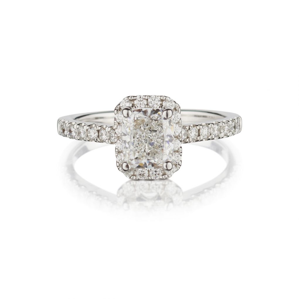 1.51 Carat Cushion-Cut Diamond Halo-Set White Gold Engagement Ring