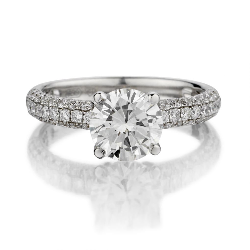 2.10 Carat Round Brilliant Cut Diamond Pave-Set Ring