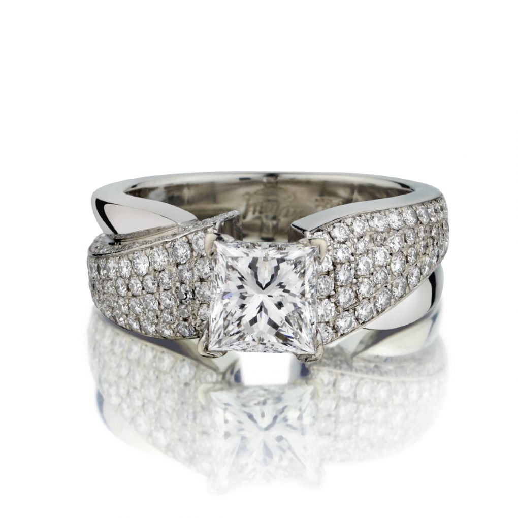 • 1.69 Carat Princess Cut Diamond Wide Engagement Ring
