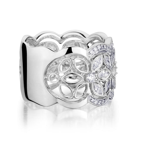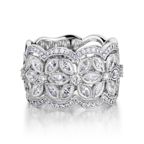 1.85CTW Round Brilliant Cut & Marquise Cut Diamond Wide Band