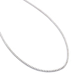 One 14kt white gold extra long diamond tennis necklace featuring 168 x 12.25 carat total weight of Round Brilliant cut diamonds of (I-1) in clarity and (G) in color. Each diamond weighs approximately 0.08 carat each. 22" in length.