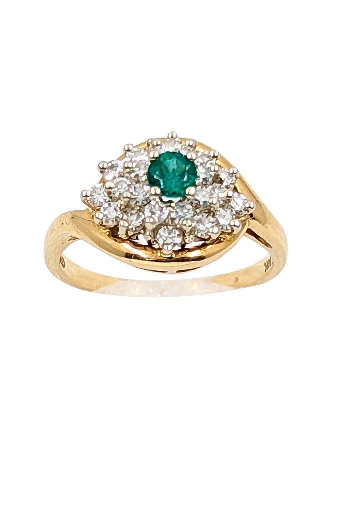 14kt Yellow and White Gold Diamond and Emerald Ring