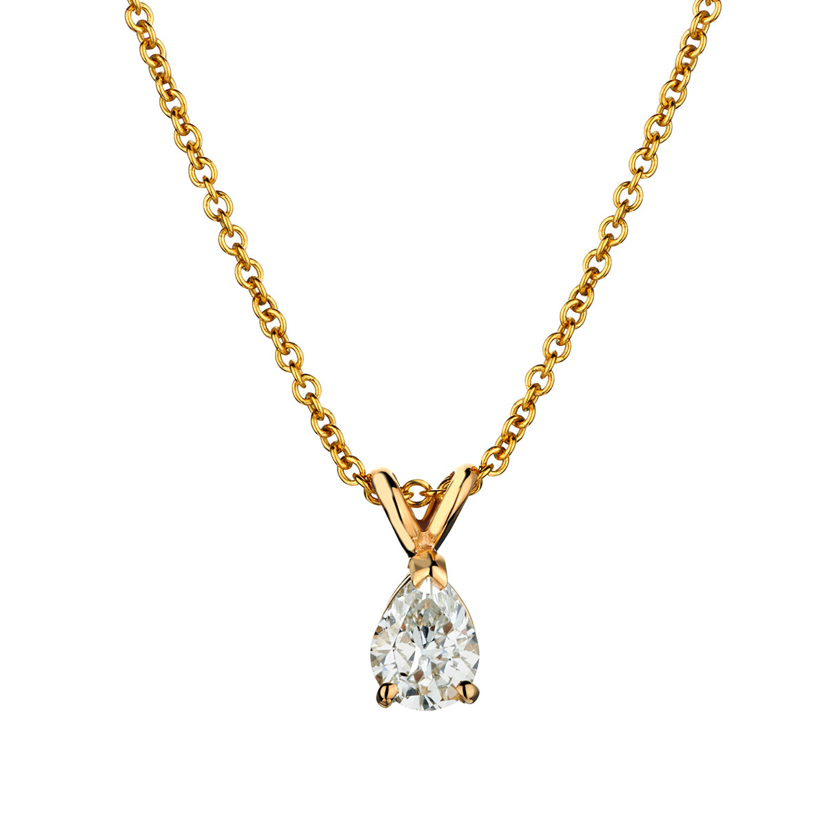 • 14kt Yellow Gold Diamond Pear Shape Solitaire Pendant.0.57 Carat Weight