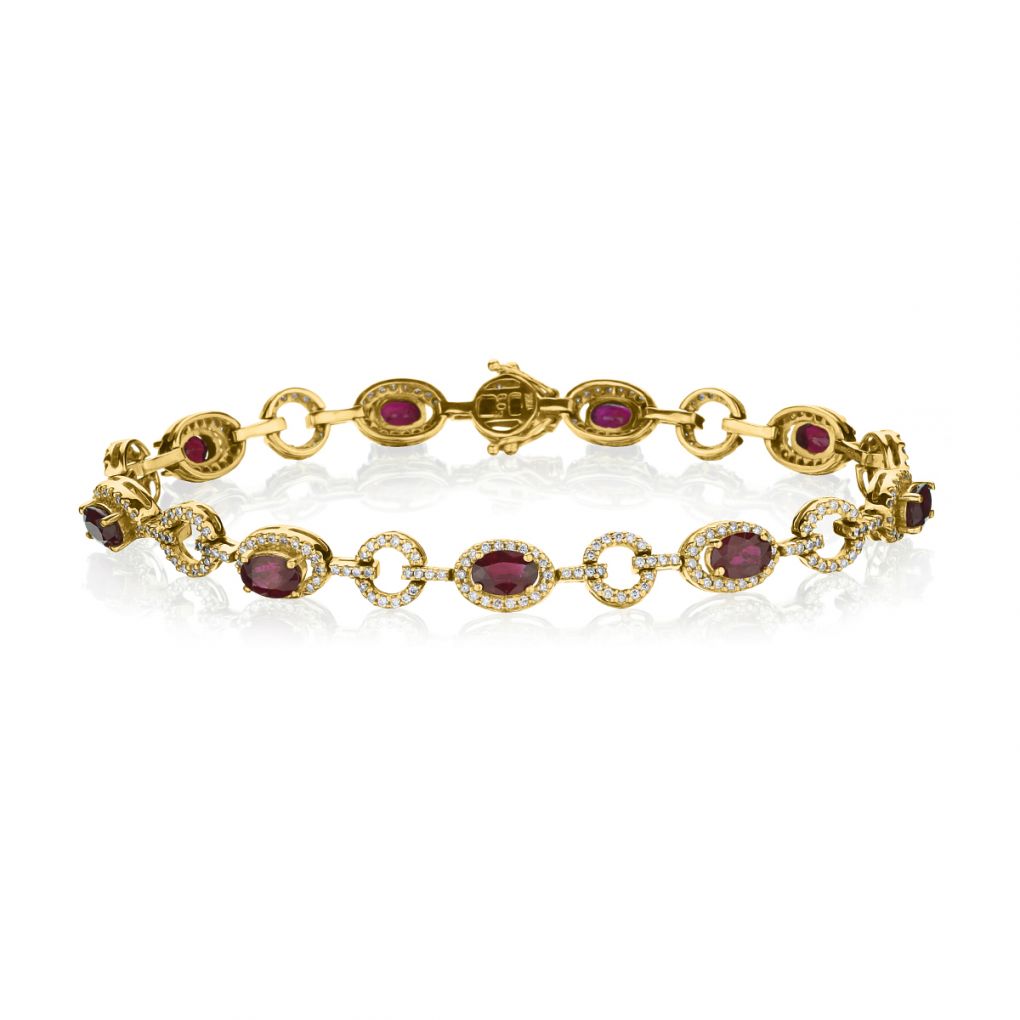 • 14KT Yellow Gold Ruby And Diamond Open Link Bracelet
