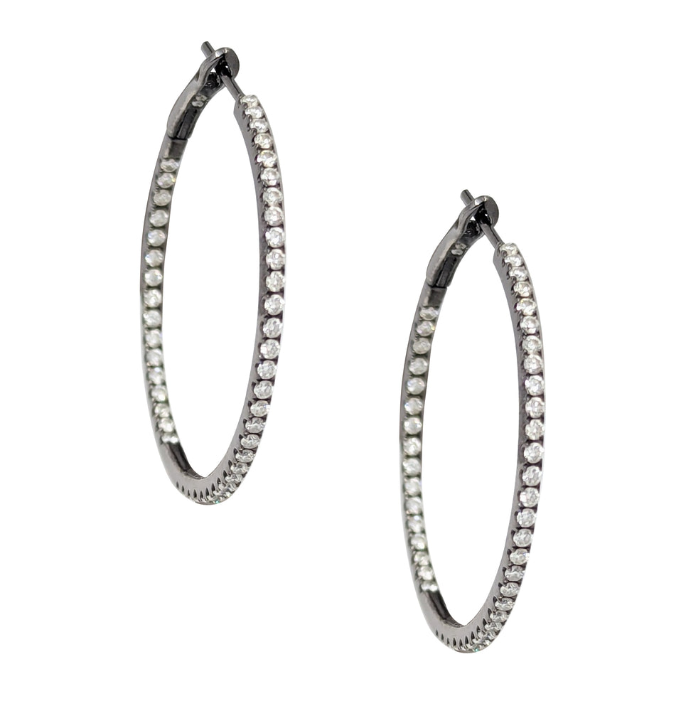 • 18kt Blackened White Gold Diamond Inside and Out Hoop Earrings.0.90ct Tw