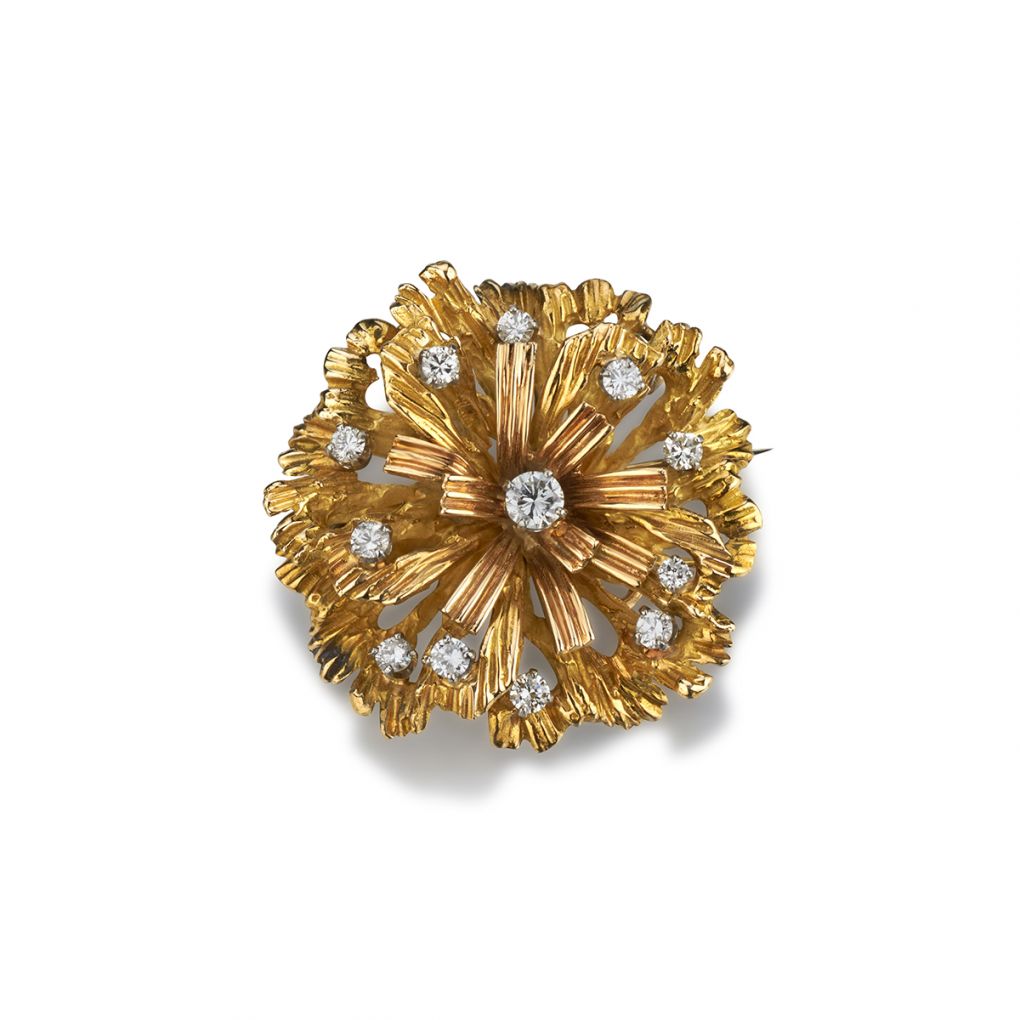 Ladies 18kt yellow gold diamond bow brooch/pendant featuring a 0.75 carat Round Brilliant cut diamond of (VS) in clarity and (G) in color. 35mm diameter. 21.9 grams in weight.