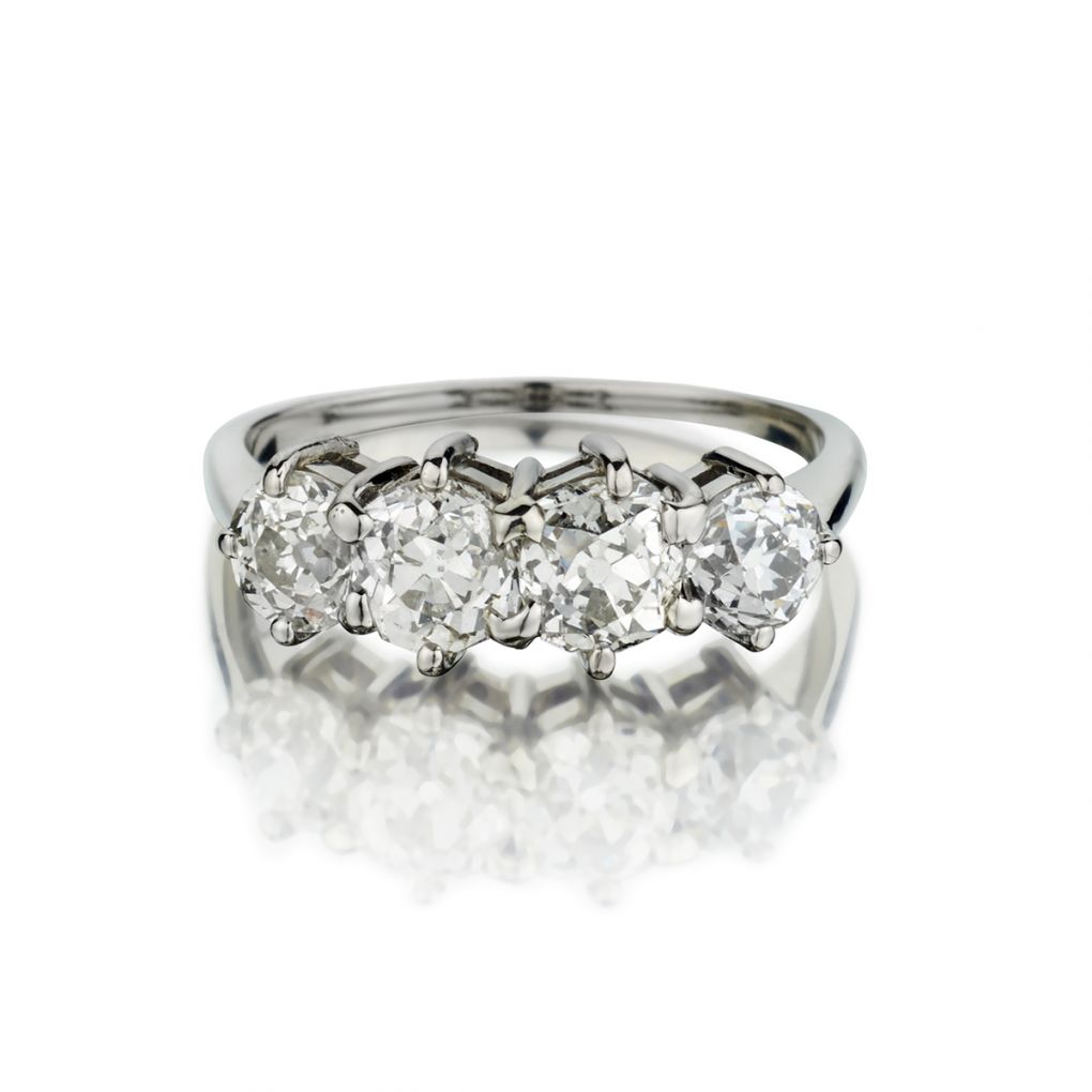 2.70 Carat Total Weight Old-Mine Cut Diamond Four-Stone Ring