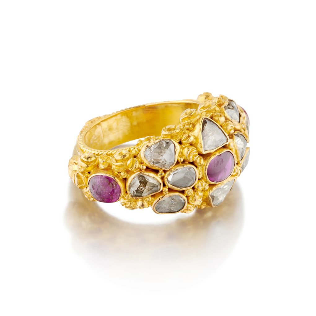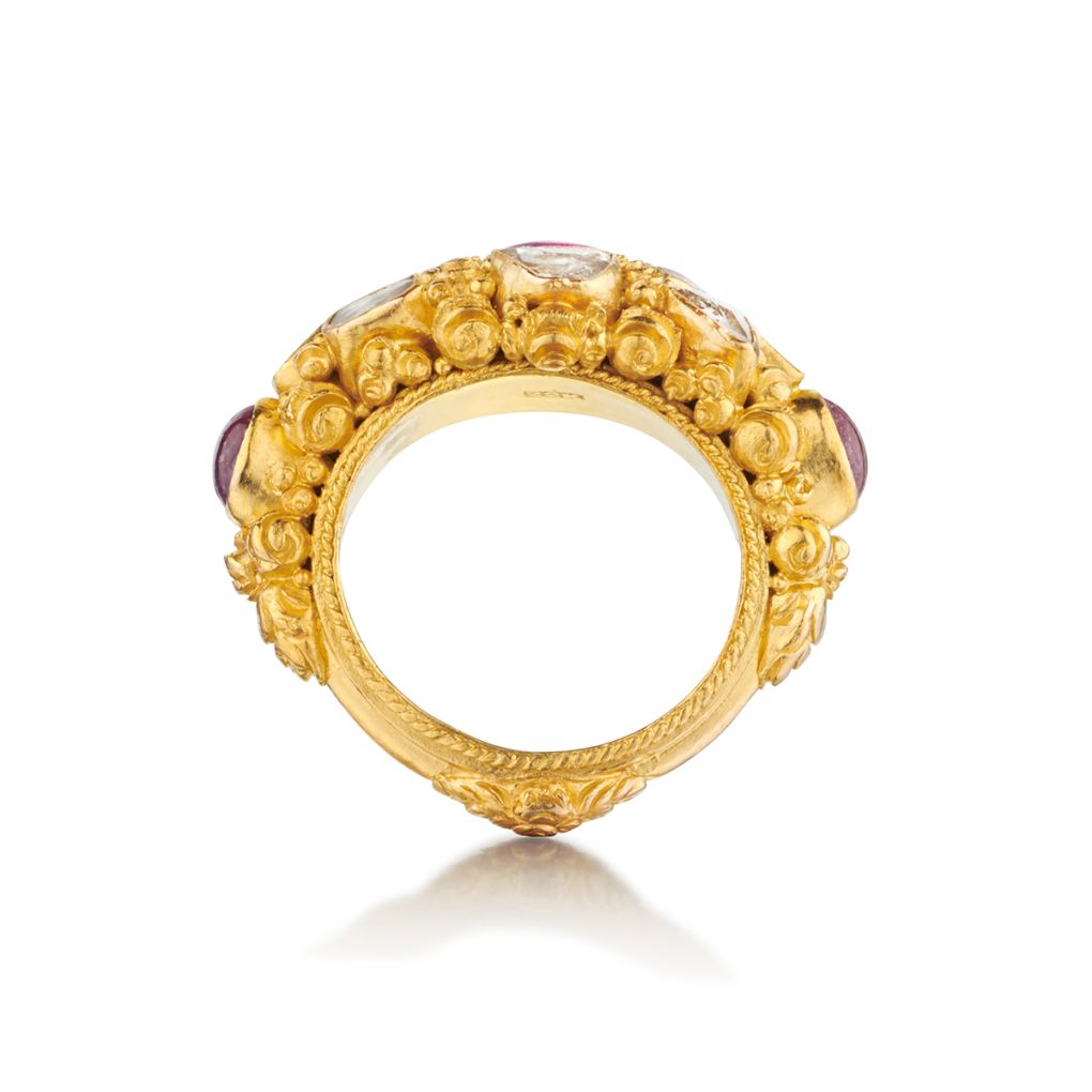 22Kt Yellow Gold Custom Made, Rose Cut Diamond and Ruby Ring. Vintage Inspired. One of a Kind