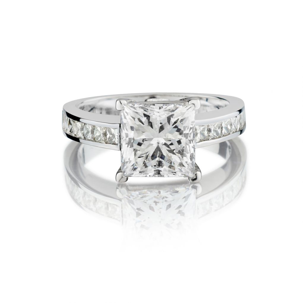 • 3.07 Carat Princess Cut Diamond WG Engagement Ring