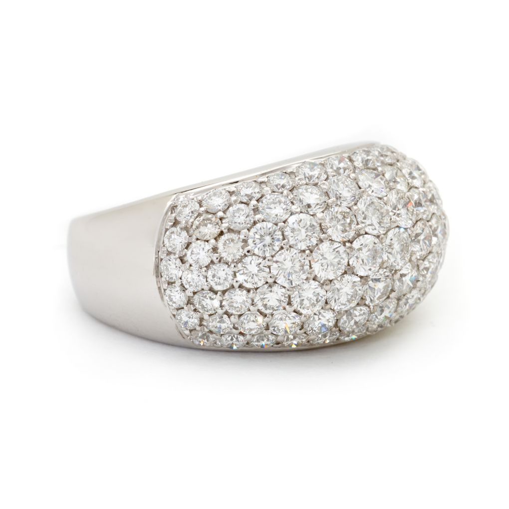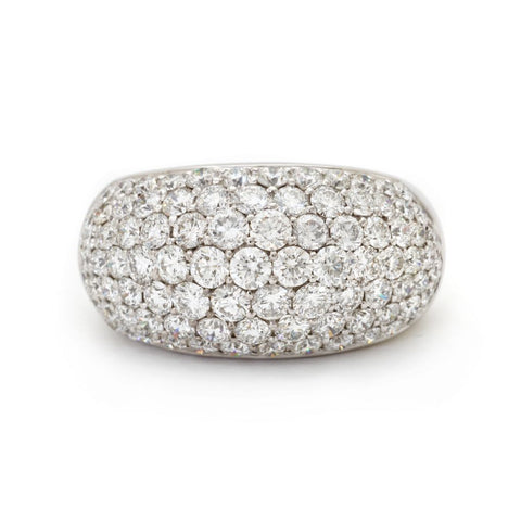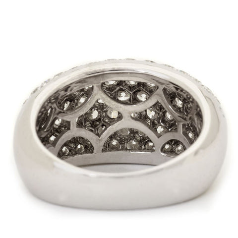 Ladies magnificent custom-made 18kt white gold Pavé-set diamond ring featuring 91 Round Brilliant cut diamonds weighing 3.17 carat total weight of (VS-SI) in clarity and (E-F) in color. This ring is currently a size 6.5 and can be sized to fit most ring sizes.