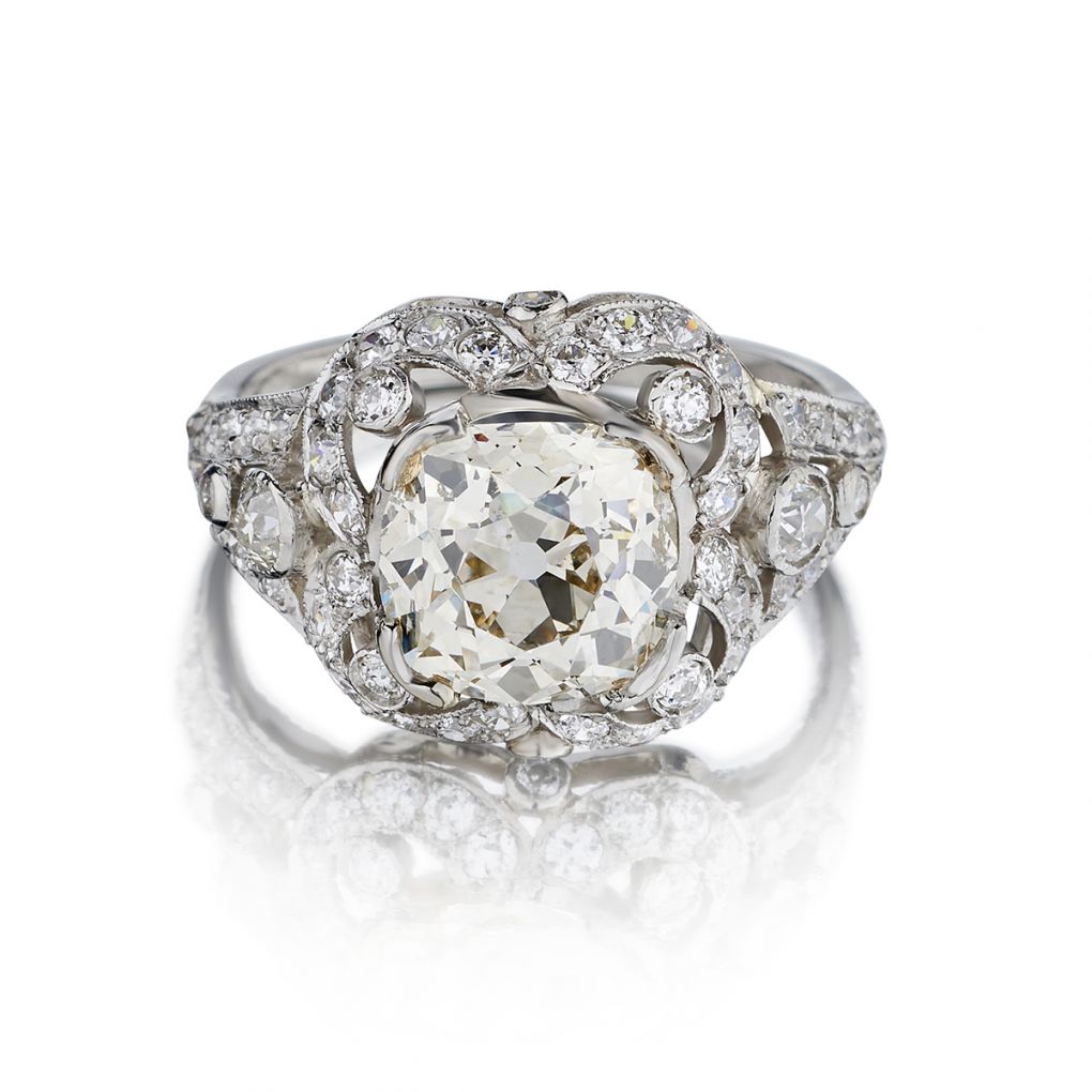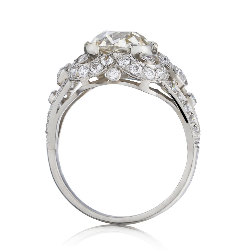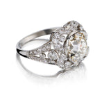 Art Deco 3.05 Carat Old-Mine Cut Diamond Halo Set Ring