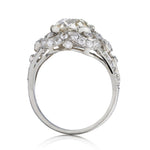 A magnificent Ladies platinum Art Deco ring with a 3.05 carat Old-mine cut diamond of (SI-2) in clarity and (L-M) in color. This ring also contains (53) old mine cut diamonds in an ornate frame around the center diamond weighing approximately 1.50 carat total weight. Currently a finger size 7.5 but can be resized.