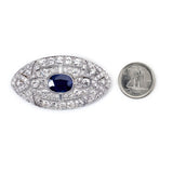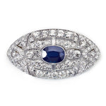 Art-Deco Blue Sapphire & Old-Cut Diamond Platinum Brooch