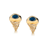 • Blue Sapphire and Diamond Earrings. 14kt Yellow Gold