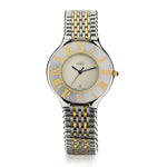 Unisex Large Cartier le Must 21 in stainless steel and gold vermeil plating. Integrated stainless steel and vermeil gold plated bracelet. Large bracelet to fit man or woman. 31mm x 5.6mm . Ultraslim. Date. Quartz movement. Circa 2000's.