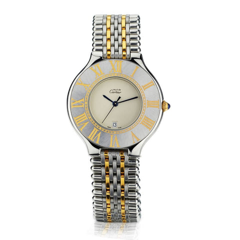 • Cartier le Must 21 in Steel and Gold Plate. Large .31mm . Ref:1330