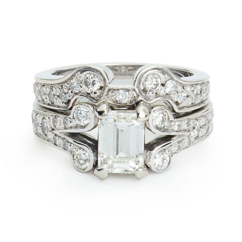 1.06 Carat GIA-Certified Emerald-Cut Diamond Ring Set