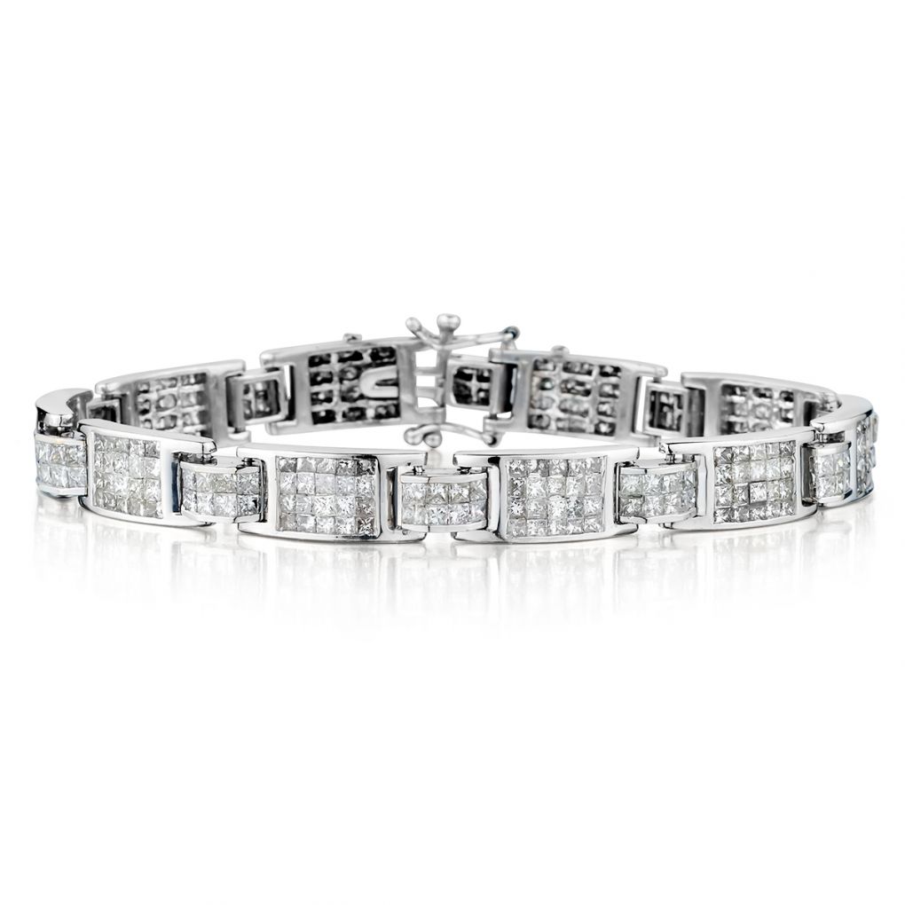 Ladies 14kt White Gold Diamond Bracelet. 9.00ct Tw Princess Cuts