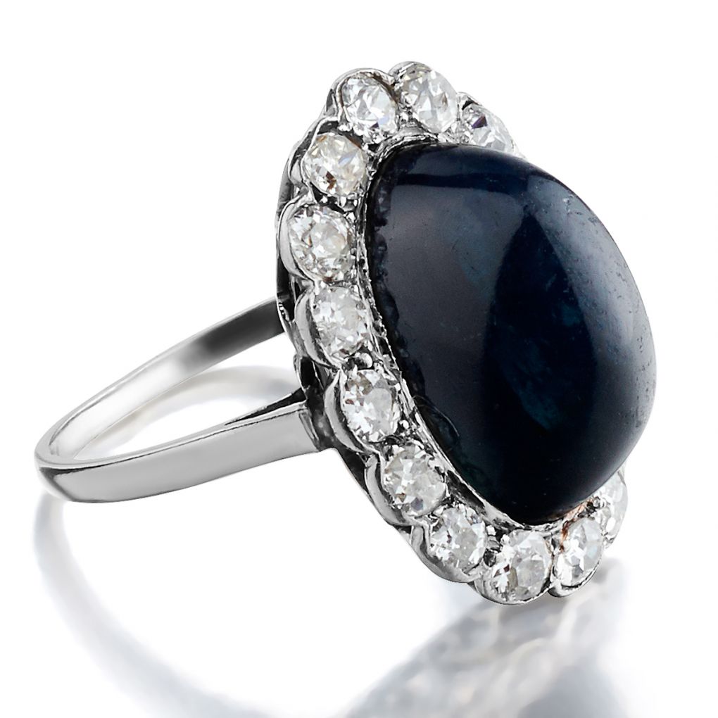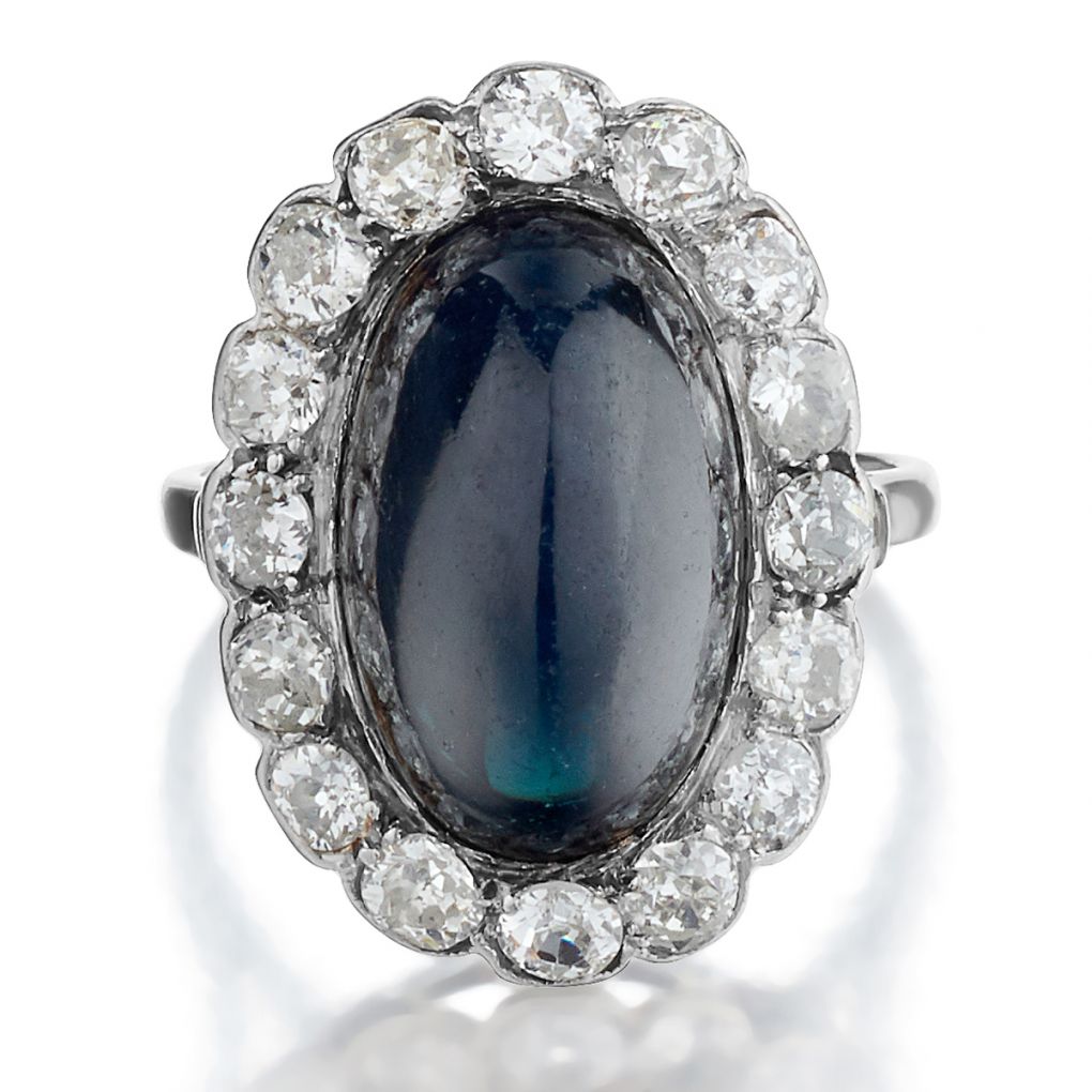 Mid-Century Cabochon Blue Sapphire And Old-European Cut Diamond Cluster Ring
