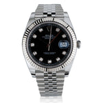 Rolex stainless steel Datejust II with an 18kt white gold fluted bezel. Black diamond dial .(Factory). 40 mm case size.Oyster perpetual.Sapphire crystal Jubilee steel bracelet. Circa 2021.Reference # 126334