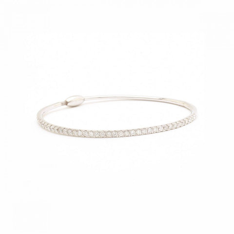 Round Brilliant Cut Diamond 18 Karat White Gold Bangle