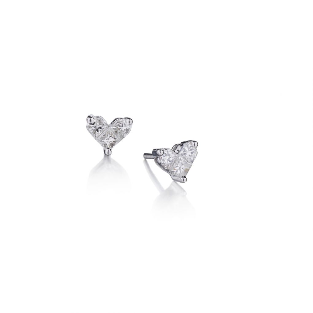 • Round Brilliant Cut Diamond Cluster Heartshaped Stud Earrings