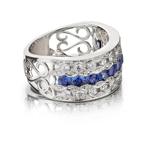 Sapphire And Round Brilliant Cut Diamond White Gold Band