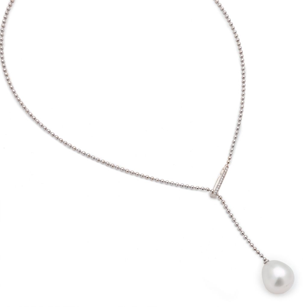 South Sea Cultured Pearl & Diamond White Gold "Y" Chain