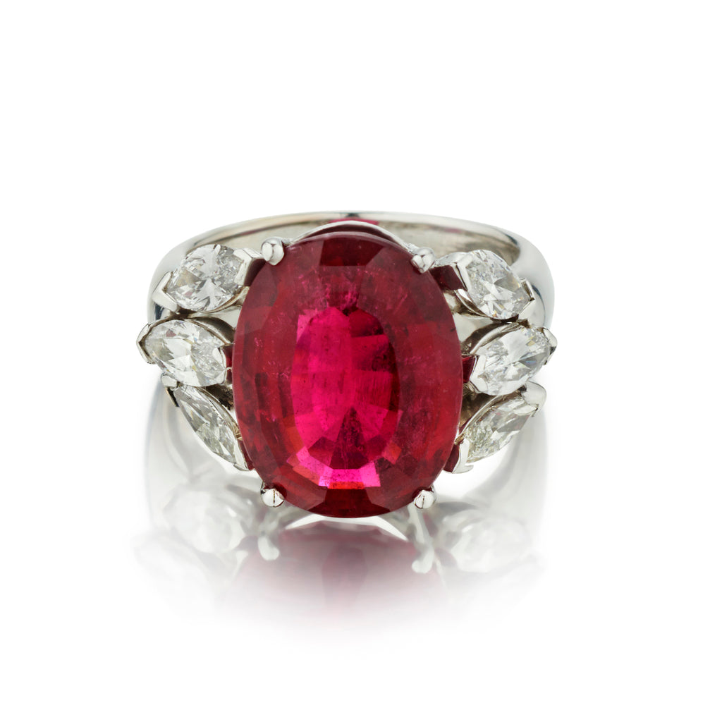 • Red Tourmaline and Diamond Cocktail Ring. Custom Made
