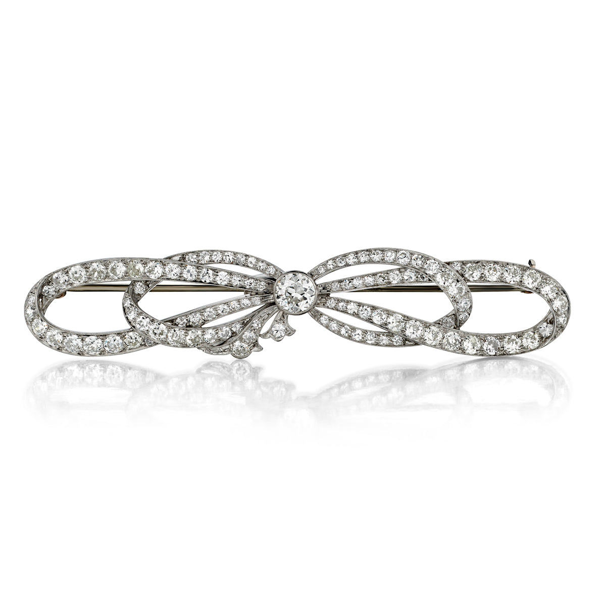 • Vintage Victorian Platinum Diamond Bow Brooch. 4.00ct Tw