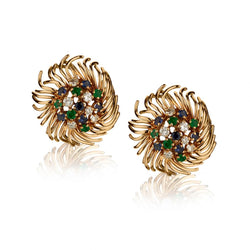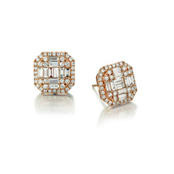 Ladies Platinum Diamond and Green Emerald Stud Earrings. 2.40ct Tw