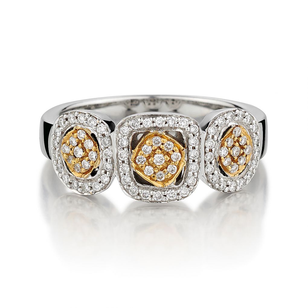 Ladies 18kt white and rose gold diamond engagement ring featuring 0.80 carat total weight of Round Brilliant cut diamonds. Currently a finger size 7 1/2 but can be resized. 7.2 grams in weight.