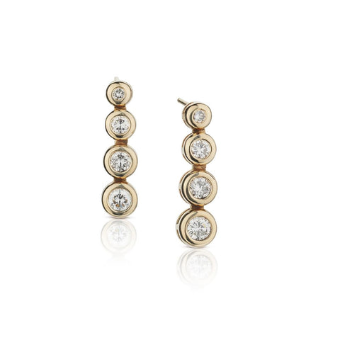 Ladies 14kt yellow gold diamond bubble earrings tapering from large at the bottom to small on top; featuring 0.80 carat total weight of Round Brilliant cut diamonds of (VS) in clarity and (H-I) in color.