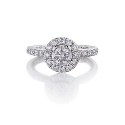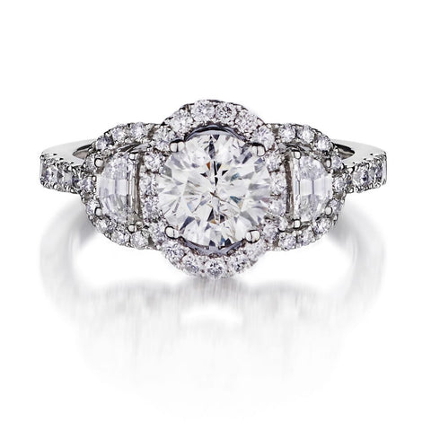 1.20 Carat Round Brilliant Cut Diamond Halo Half-Moon Diamond Ring