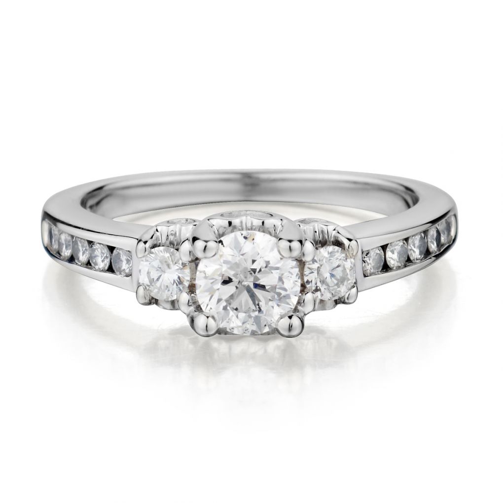 • 14kt White Gold Past, Present and Future diamond ring. 1.10ct Tw.