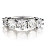 Ladies 18kt white gold diamond five stone eternity band featuring 5.15 total carat weight of Brilliant cut diamonds of (SI-1-2) in clarity and (F-G) in colour. Half way around. Shared claw setting.Size 6-3/4. This ring can be resized.