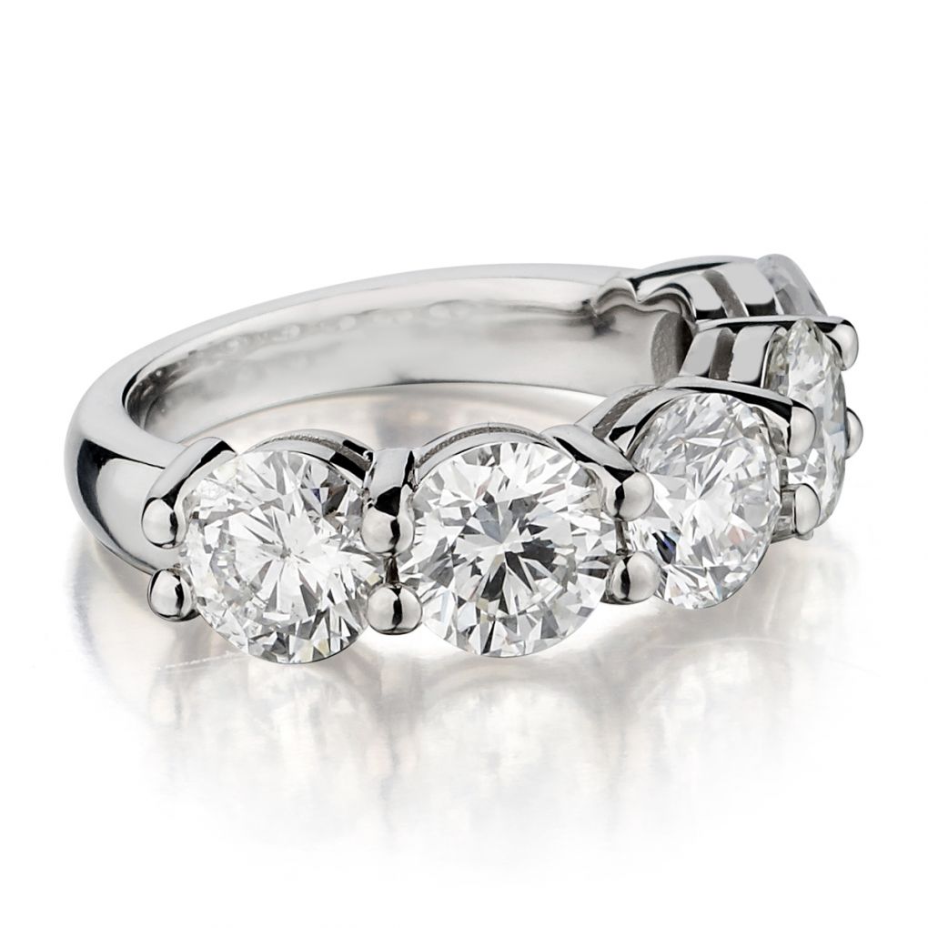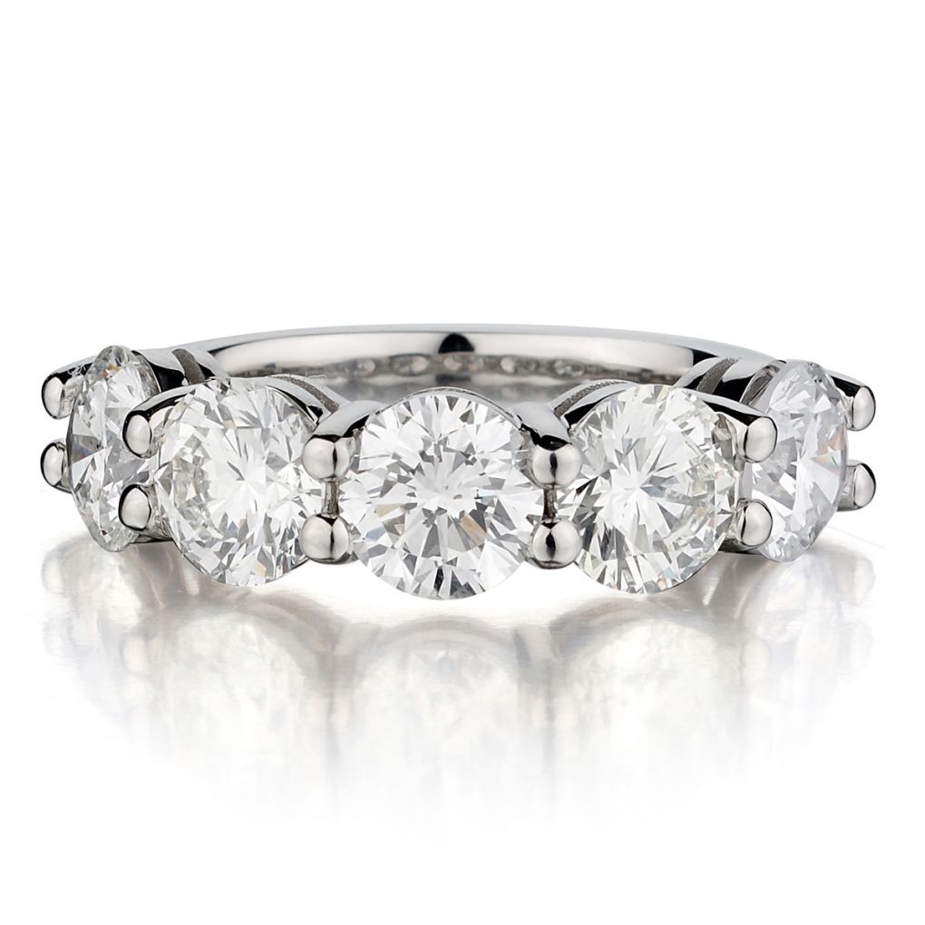 18kt white gold 5 stone diamond ring. 5.15ct Tw Brilliant cut .