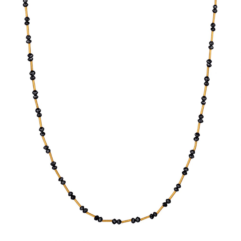 24KT Yellow gold branded GURHAN Rain Bead Station tubes Necklace set with black diamonds .16"in length. Made in Ankara Turkey.