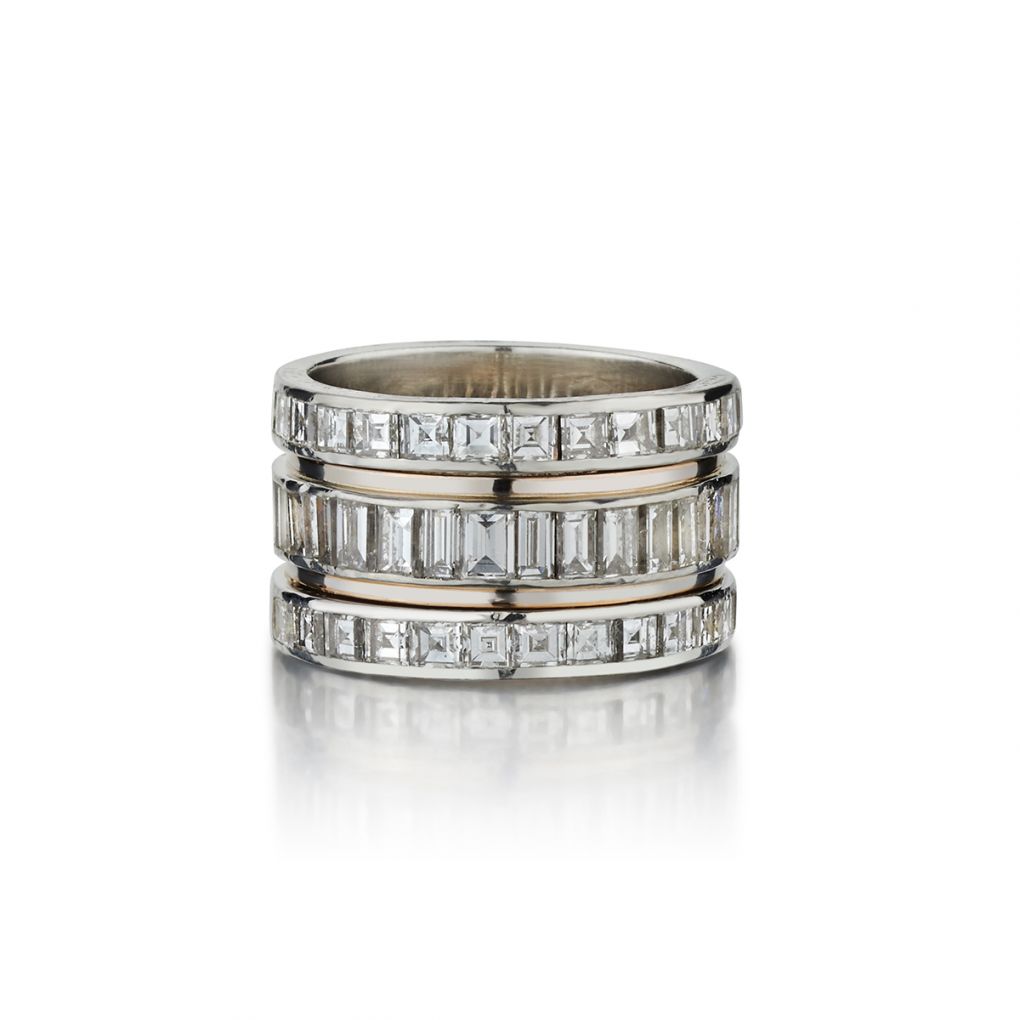 • 5.50 Carat Total Weight Baguette And Square Cut Diamond Wide Band