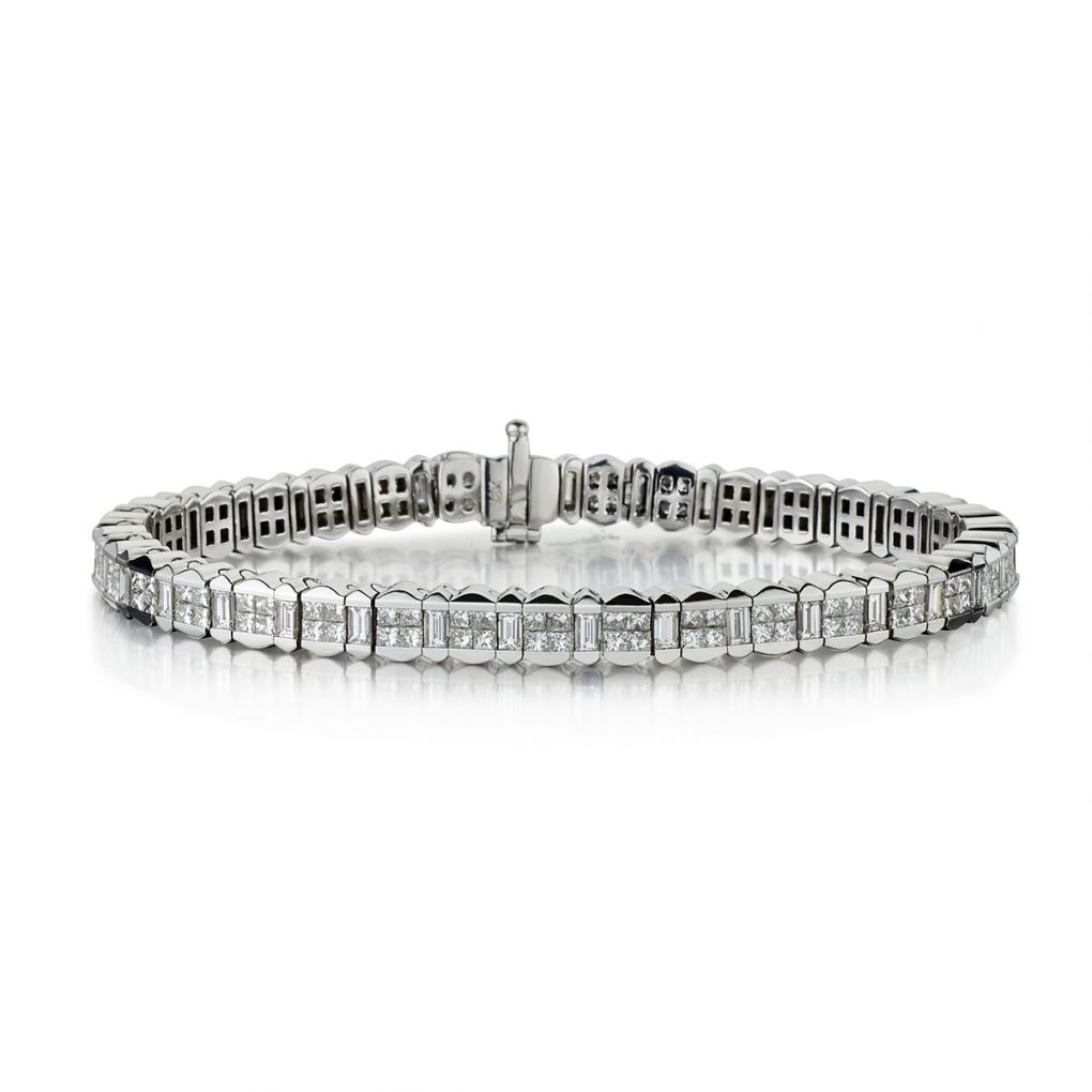 7.00 Carat Total Baguette And Princess Cut Diamond White Gold Tennis Bracelet